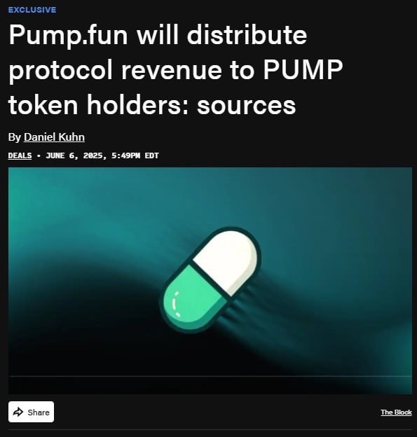 👀 Придется холдить токен PUMP Pump Fun планирует делиться прибылью с холдерами токена. 🛍 Также команда выделила 10% на аирдроп для комьюнити. Планируемый саплай — 1 трлн токенов. Еще один гигант на подходе, который может порадовать публику, если, конечно, не напортачит 🤔