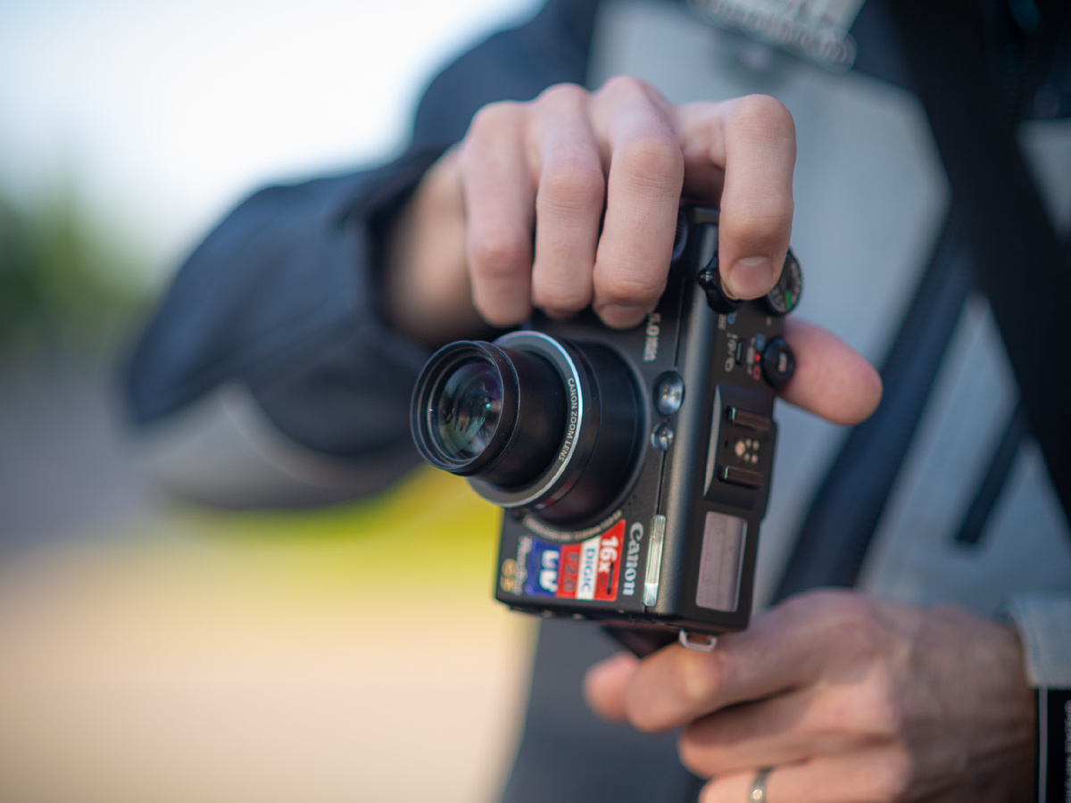 Не буду впадать в технический обзор этой модели, конкретно на G5 в рунете уже есть до зубовного скрежета подробный современный обзор от известного ретро-фото-коллекционера. Я лишь хотел сделать очерк о первом опыте использования камеры на простой фотопрогулке. Для максимального контраста с собой ещё была взята полнокадровая зеркальная камера с портретным объективом, чтобы не оставить компакту G5 никаких шансов. Однако он удивил!