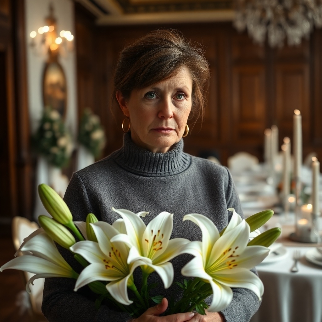 Возле банкетного зала кипела суета: фургоны разгружались, повара сновали с подносами, флористы поправляли арки из живых цветов. Снежинки таяли на горячем асфальте у входа. Ирина припарковалась в стороне, достала коробку с лилиями, ветками розмарина и золотыми свечами — это были её личные дополнения к оформлению. Хотелось, чтобы зал дышал теплом.