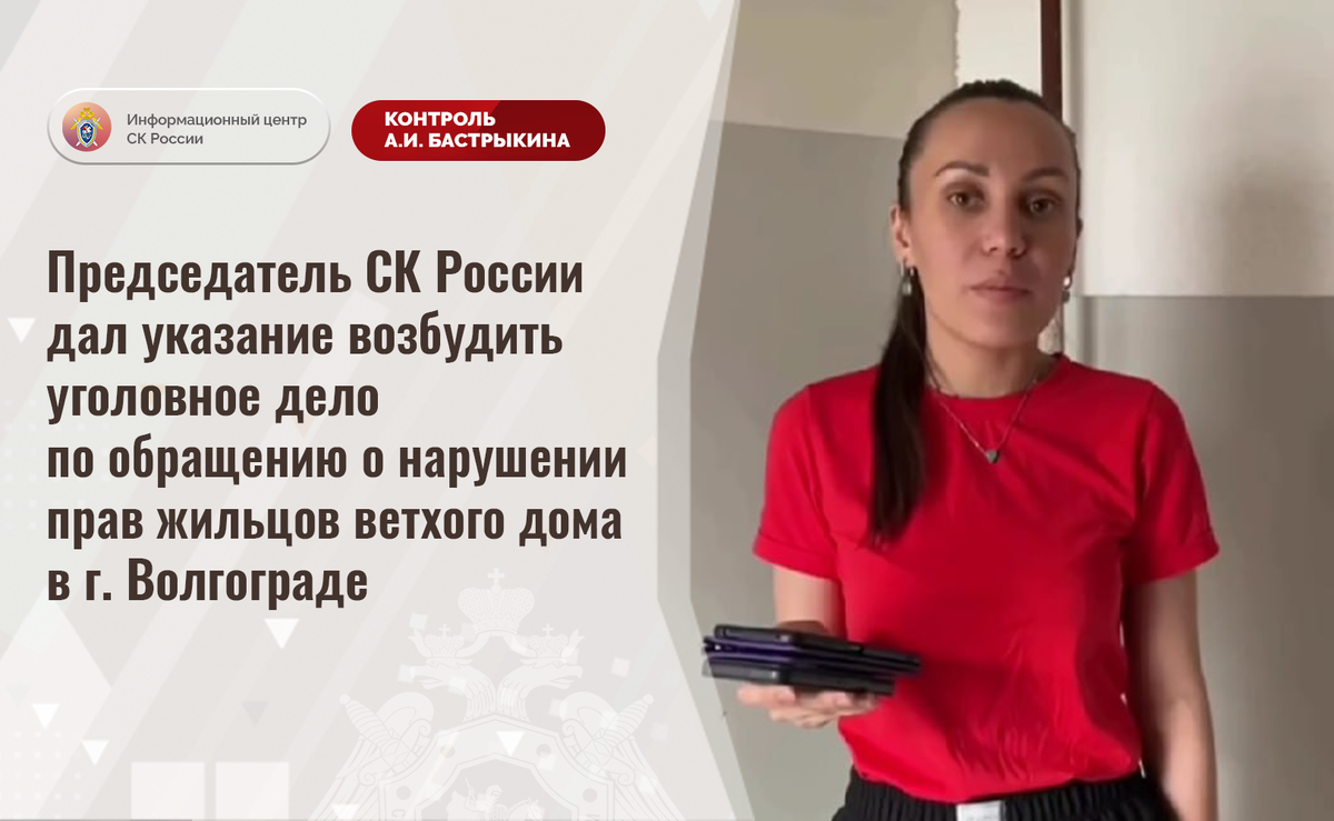 Председатель СК России дал указание возбудить уголовное дело по обращению о нарушении прав жильцов ветхого дома в г. Волгограде