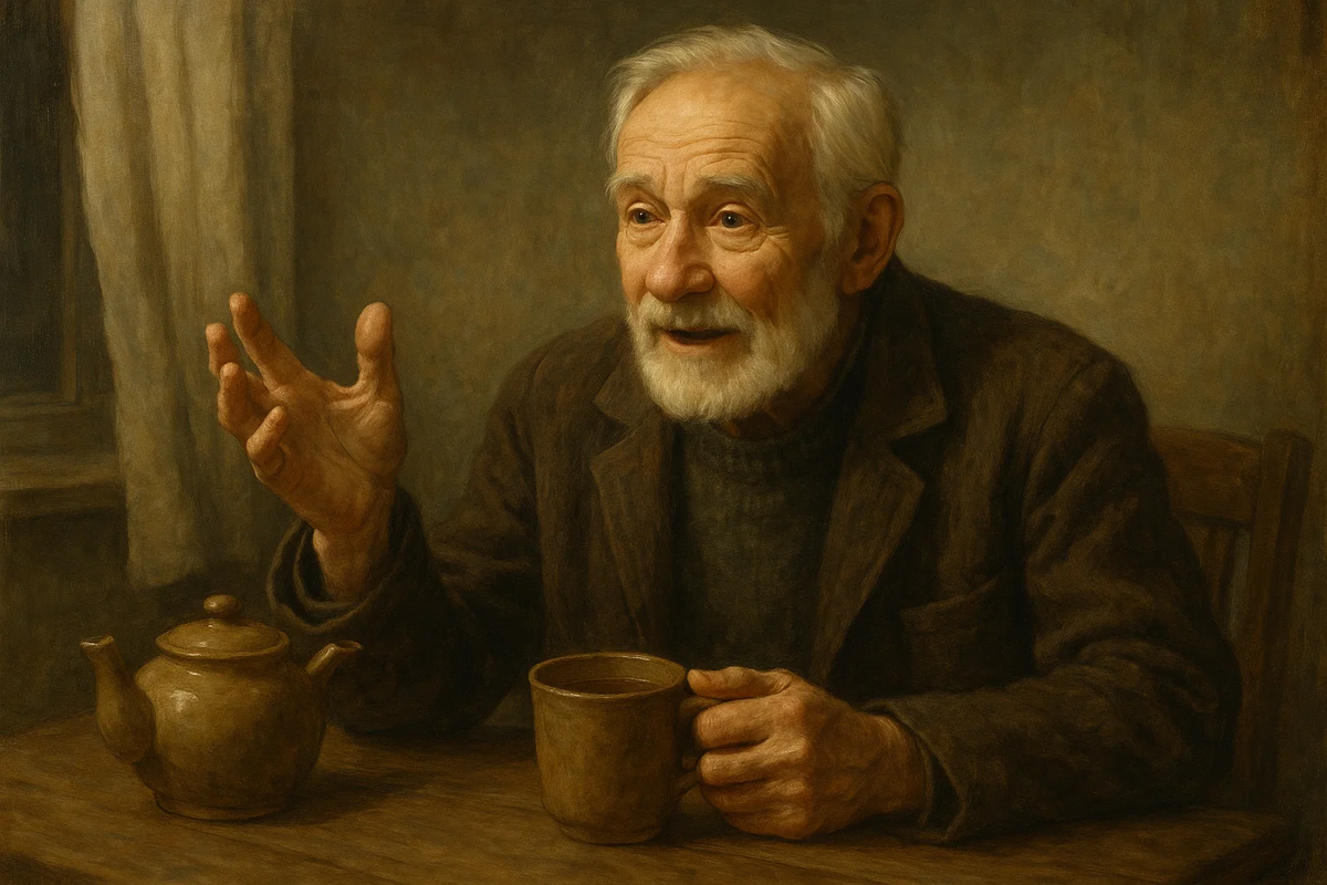Я никогда не забуду деда Егора. В городе X, что в Мурманской области, он был человеком особенным. Лет ему было под девяносто, но глаза его горели, как у молодого, а голос, спокойный и тёплый, мог заставить слушать часами. Я часто заходил к нему в гости, особенно после школы. Мы садились за стол, он наливал чай, пахнущий травами, и начинались наши разговоры. Я делился своими делами — оценками, мечтами, глупыми мальчишескими заботами. А он, в зависимости от моих успехов, рассказывал истории. Хорошая оценка — и вот уже захватывающий рассказ о его молодости, о море, о приключениях. Плохая — и меня ждала нравоучительная байка, от которой я порой зевал, но всё равно слушал. Дед Егор был для меня не просто соседом — он был как родной дед, которого у меня никогда не было.