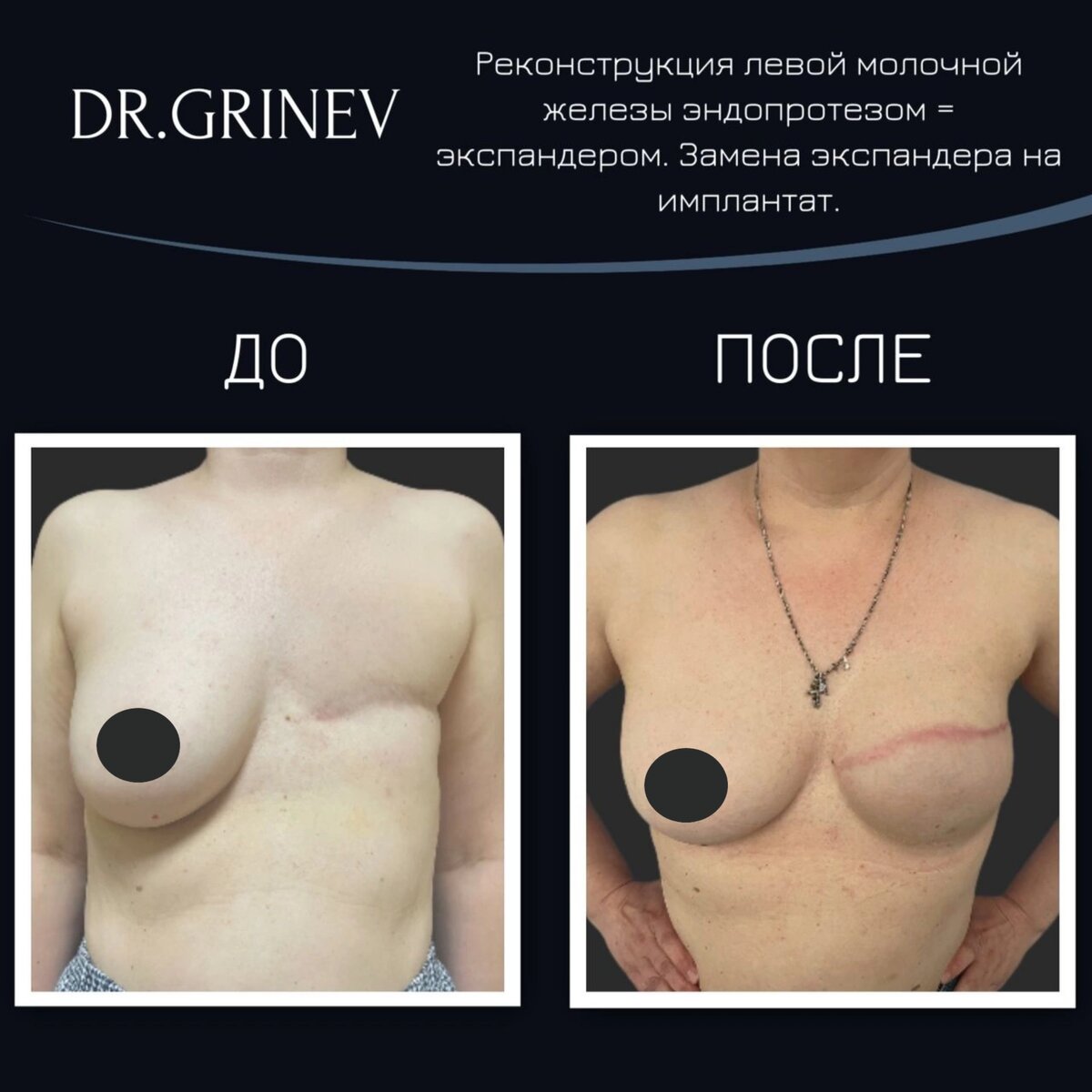 Редукция левой молочной железы эндопротезом = экспандером. Замена экспандера на имплантат.
