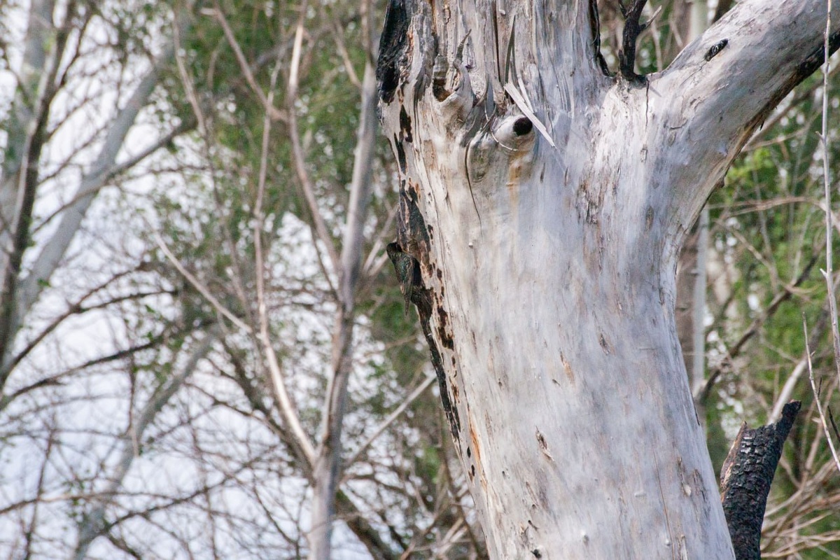 Вот такие зеленые поля и обугленные стволы можно увидеть у барнаульского Гребного канала.
