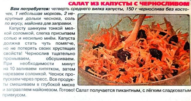 Легкий, сочный и невероятно полезный салат из капусты с черносливом – это настоящая находка для тех, кто следит за своим здоровьем и любит экспериментировать со вкусами. Казалось бы, простые ингредиенты, а в итоге получается блюдо, способное удивить даже искушенных гурманов. Хрустящая свежая капуста, словно белоснежный холст, идеально сочетается со сладостью и дымным ароматом чернослива. Этот контраст текстур и вкусов создает неповторимую гармонию, которая никого не оставит равнодушным. Добавьте к этому сочность моркови, легкую кислинку яблока и пикантность грецких орехов – и перед вами кулинарный шедевр, достойный самого изысканного стола. Приготовление салата не займет много времени и не потребует специальных навыков. Просто нашинкуйте капусту, нарежьте чернослив, натрите морковь и яблоко на крупной терке. Заправьте салат сметаной или йогуртом, добавьте немного лимонного сока и меда для баланса вкусов. Перед подачей посыпьте салат измельченными грецкими орехами. Этот салат не только