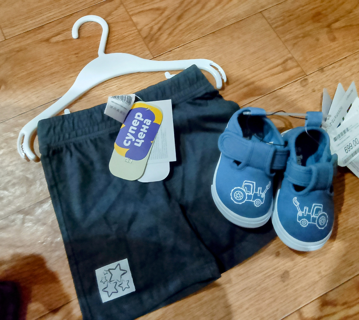 Зашли в детский мир Арсюшке за сандалиями, к сожалению его размера не было, взяла ему лёгкие тапочки и шорты