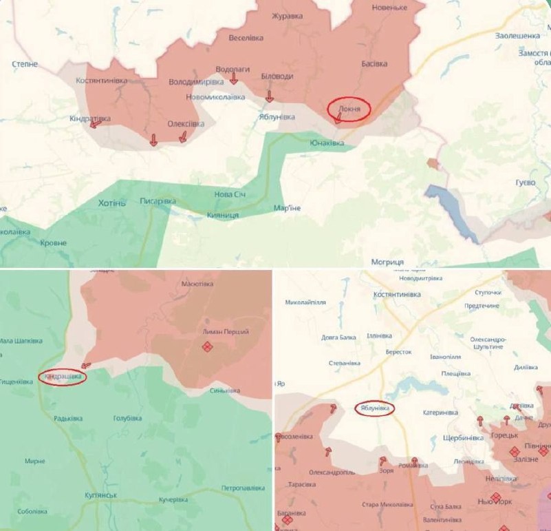 Также российские войска продвинулись в районе Кондрашовки в Харьковской области и Яблоновки в ДНР.