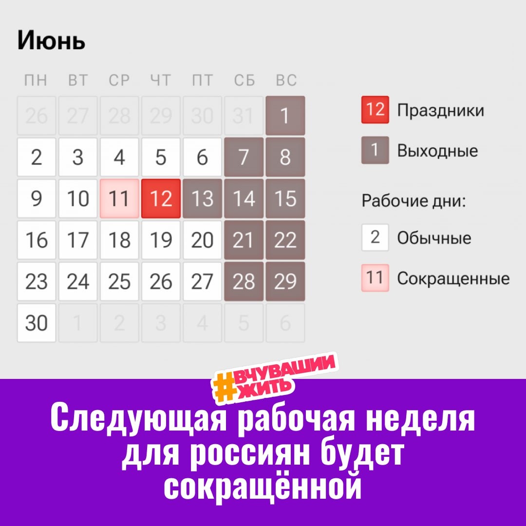 #вчувашиижить — про длинные выходные трубить! Уже на следующей неделе нас ждут длинные выходные — с 12 по 15 июня отдыхаем в честь Дня России! А 11 июня — сокращённый рабочий день. Пора строить планы! 🌳 Прогулки по любимым местам Чувашии 🎉 Городские мероприятия 🏡 Поездка в деревню 🍓 Ягодные рынки и пикники на природе Как вы собираетесь провести эти четыре дня? Делитесь в комментариях — вдохновим друг друга! Подписаться/ Предложить новость