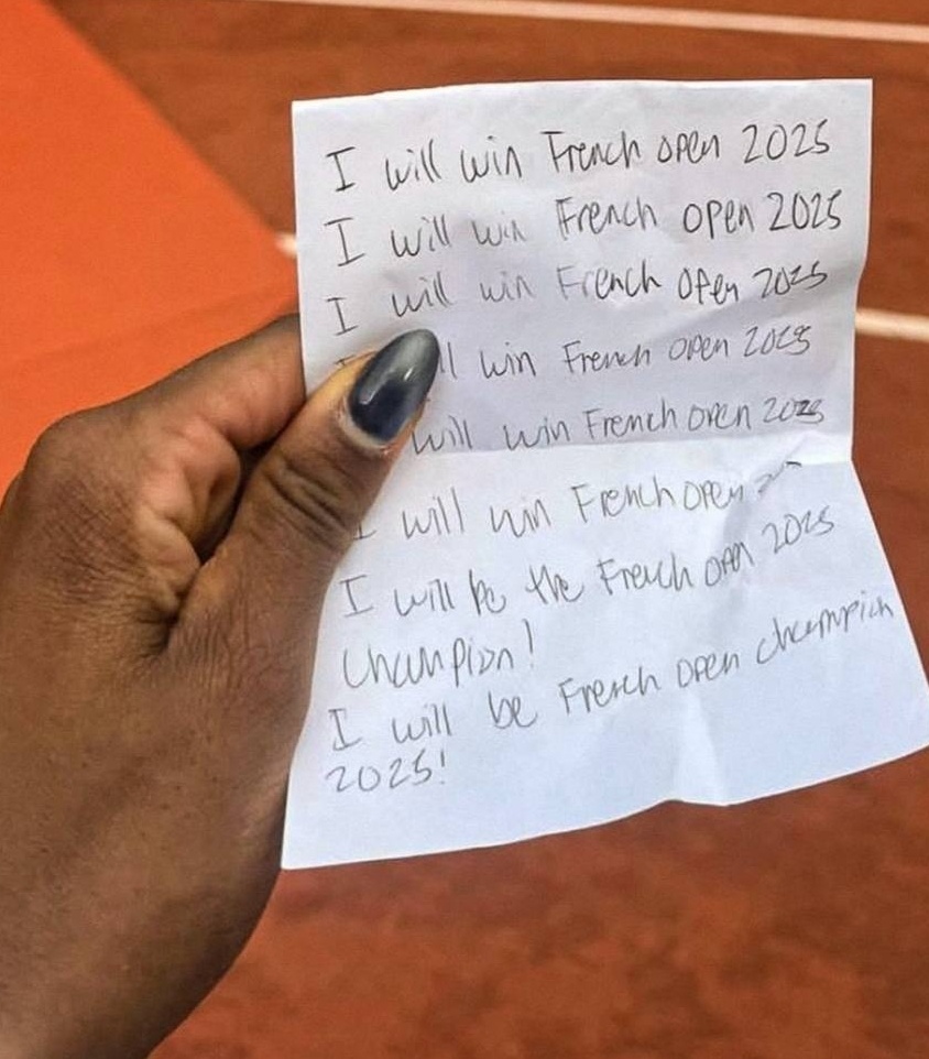 Коко Гауфф опубликовала интересный пост после победы на «Ролан Гаррос». «Это так много для меня значит, правда… Чемпионка «Ролан Гаррос». Я так много работала ради этого момента, и то, что это действительно произошло — просто безумие. Спасибо тебе, боже и спасибо всем. Это значит для меня целый мир. Я до сих пор в шоке, честно, не могу найти слов, но пока могу сказать только одно: спасибо и никогда не отказывайтесь от своих мечт». Гафф показала бумажку, на которой писала, что выиграет «Ролан Гаррос»: Коко взяла записку с собой на турнир и показала после финала! А еще Гауфф показала заметку в телефоне: в 2021 году Коко написала, что у нее был сон, как она побеждает на «Ролан Гаррос».