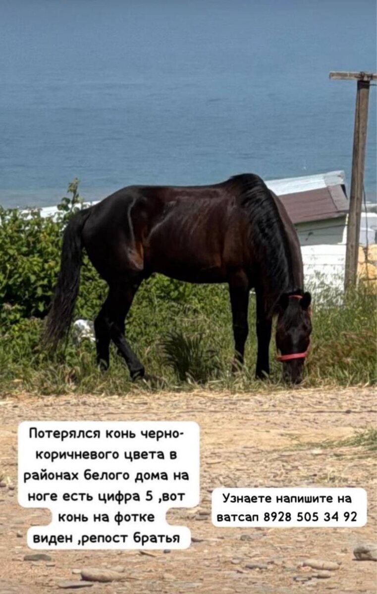 ❗️Потерялся конь черно-коричневого цвета в районе Белого дома. На его ноге есть номер 5. Если кто-то видел, пожалуйста, сообщите!