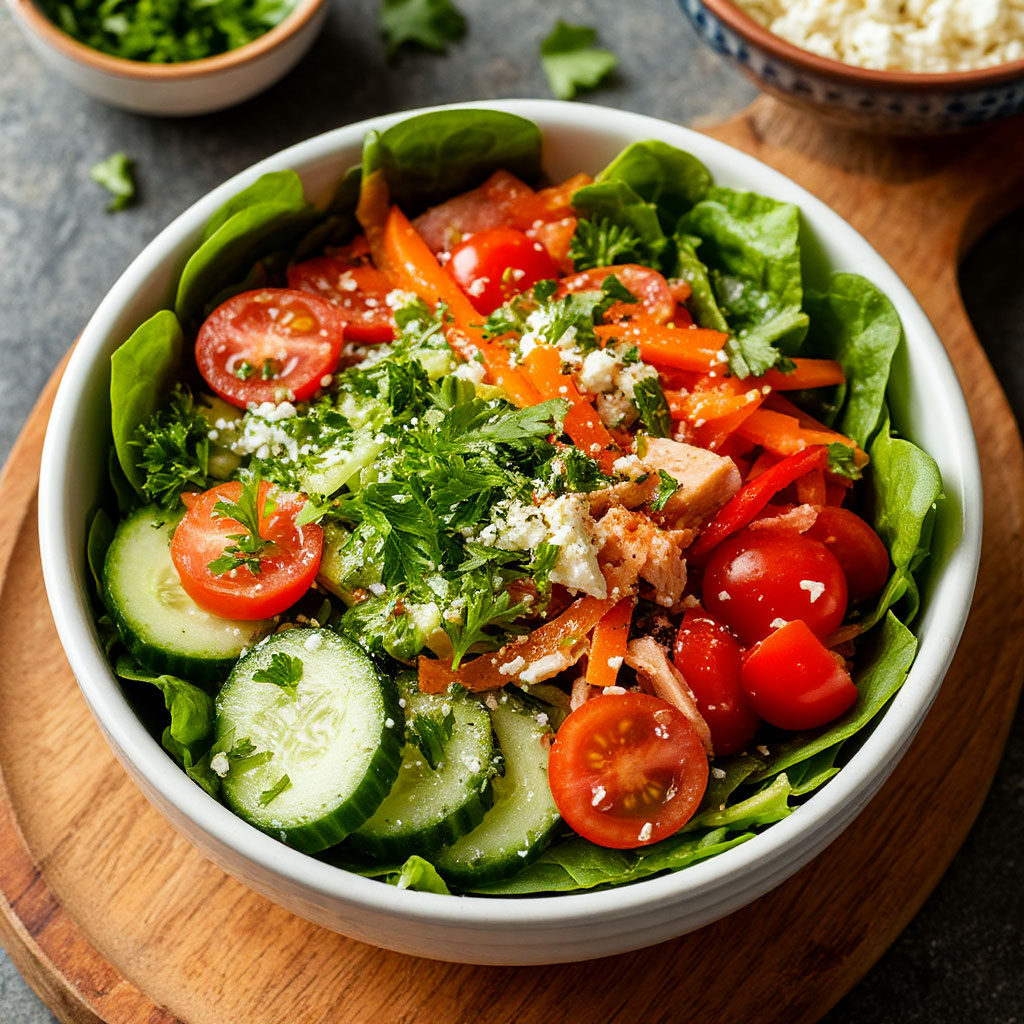 Калорийность: 136 ккал на 100 г Пищевая ценность на 100 г: Ингредиенты: Приготовление: Советы по приготовлению: Важно: Благодаря использованию готовых продуктов, салат готовится очень быстро и не требует сложных кулинарных навыков. Сочетание ингредиентов делает его сытным и вкусным. Приятного аппетита!