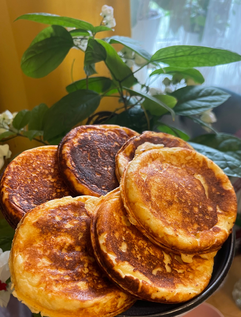 Творожные панкейки на завтрак. Ингредиенты: *я добавила еще одну мерную ложку протеина Приготовление: Желтки отделяем от белков. Белки взбиваем до белых пик. Творог и желтки смешиваем, затем добавляем сухие ингредиенты и тщательно смешиваем. В конце добавляем взбитые белки и еще раз смешиваем. Разогреваем мультипекарь, с панелями панкейки. Можно смазать немного маслом, если панели уже прилипают. И выпекаем примерно по 5-7 минут порцию, до золотистого цвета. Получается 6 штук, пропекаются хорошо. Приятного аппетита!