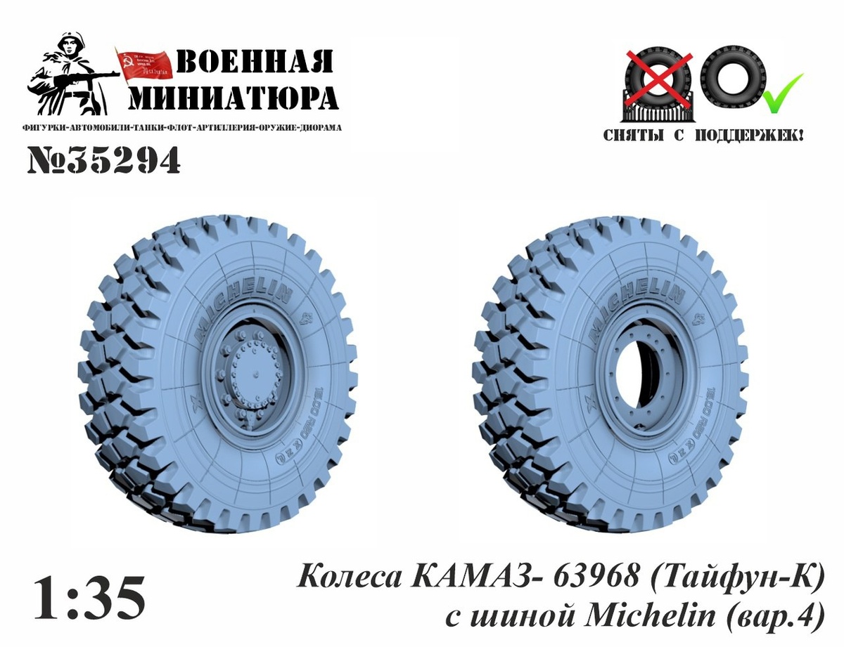 Ставропольская "Военная миниатюра" выпустила на 3D-принтере колеса с разными шинами для моделей КамАЗ-63968 ("Тайфун-К") в масштабе 1/35.