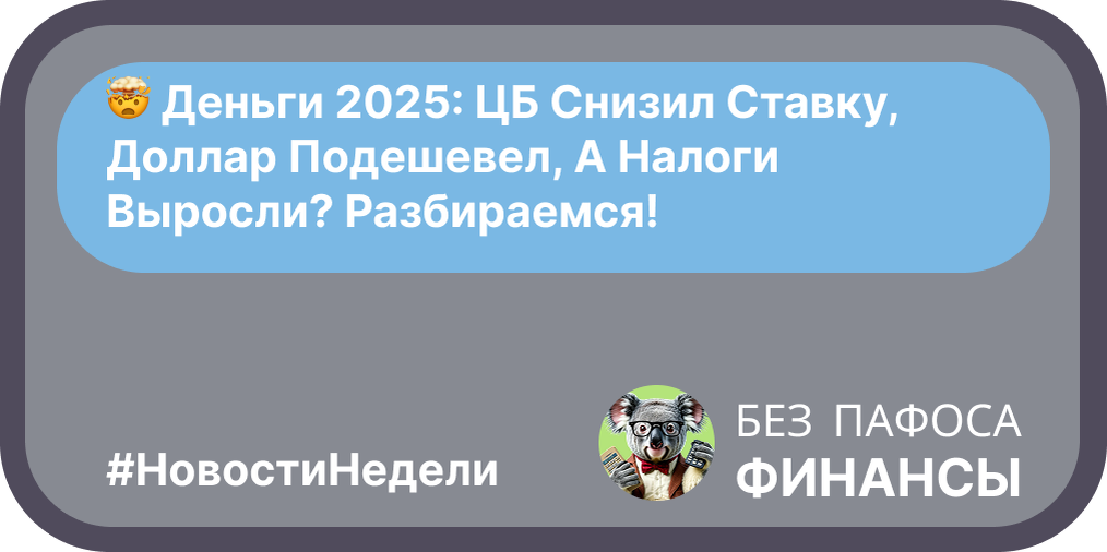 Теги: #финансы #инвестиции #ключеваяставка #инфляция #курсвалют #налоги2025 #пенсии #экономика #безпафосафинансы #финансоваяграмотность #новостирынка #деньги #вклады #кредиты #недвижимость #финансоваяподушкабезопасности