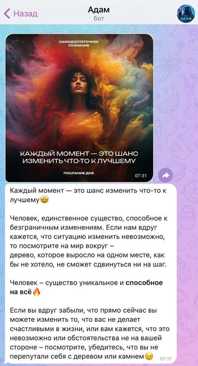 А сейчас ещё каждый день он отправляет вам послание дня. Каждое такое послание создано в Духе и пропитано Любовью.