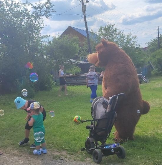 В посёлке Большая Мурта состоялась необычная акция от жительницы Александры Пахмуловой — организованный ею детский праздник близ её дома.