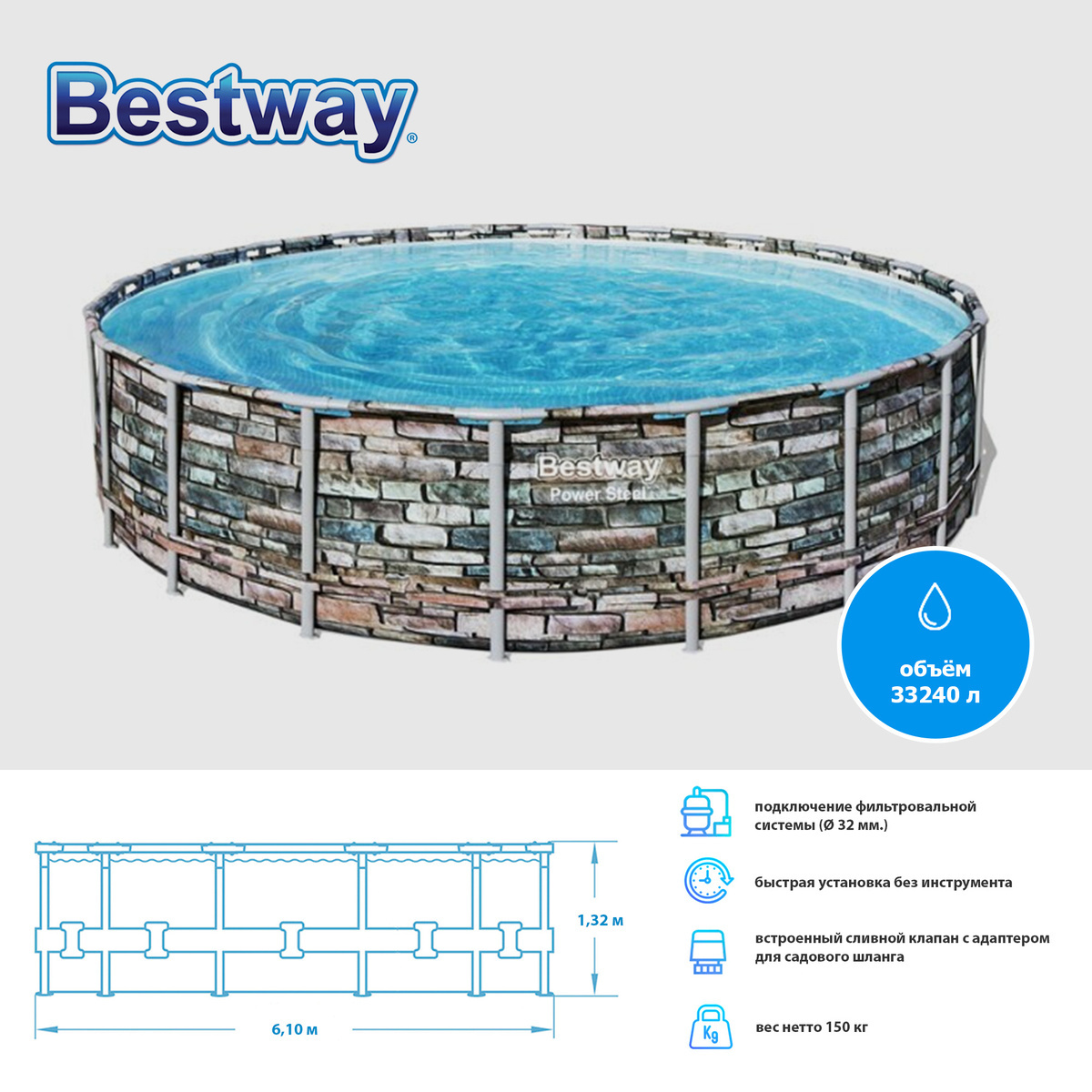 1. Каркасный бассейн Bestway 610x132 см — Король дачных бассейнов! 👑