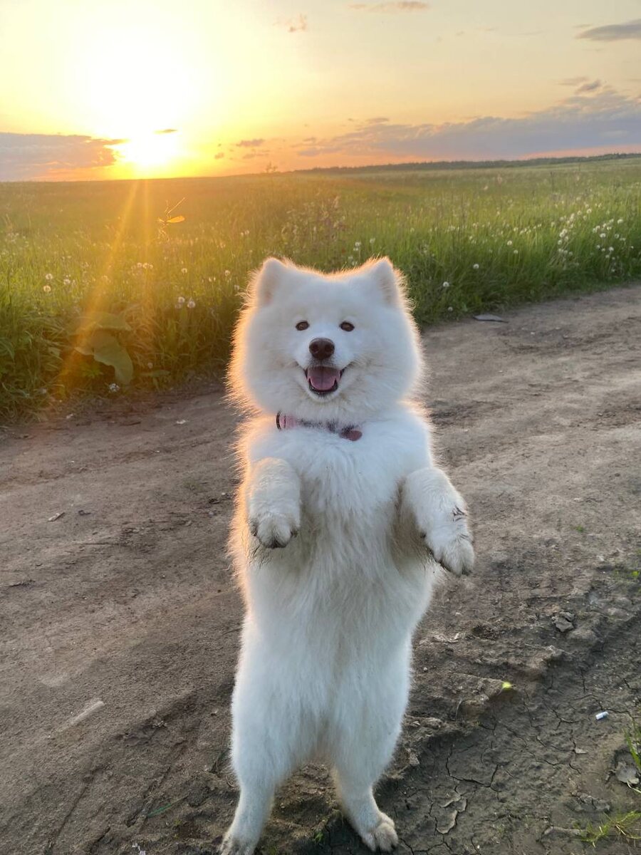 О, как же я обожаю слушать пение самоедов! 😍 Если вы никогда не слышали этого уникального «концерта», то вам просто необходимо это исправить! Чем отличаются песни самоеда? Самоеды – собаки с удивительным голосом! Их лай больше похож на мелодичное завывание или даже пение. Это связано с особенностями строения голосовых связок этих пушистых артистов. Представьте себе снежную ночь, тихий лес и вдруг... волшебное звучание голоса вашего питомца, словно он общается со звездами! 🌌✨ Когда самоед начинает свой вокальный номер, кажется, что он рассказывает какую-то историю или делится своими эмоциями. А еще эти ребята очень чувствительны к настроению окружающих. Они могут подпевать под музыку, откликаться на звуки природы или поддержать вас своим песенным талантом, когда вы грустите. Вот несколько причин, почему самоеды так часто «поют»: Выражают радость: Когда им весело или они рады видеть хозяина, они начинают "петь" от счастья. Привлекают внимание: Иногда таким образом они хотят сооб