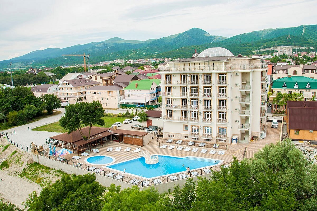 Расположение отеля можно назвать стратегически выгодным — он находится в тихом районе Кабардинки, что гарантирует спокойный отдых, при этом все основные объекты инфраструктуры доступны в пешей доступности. Территория отеля утопает в зелени, создавая атмосферу загородного курорта прямо в центре курортного поселка. Номера отличаются продуманным дизайном и высоким уровнем комфорта, а внимание к деталям проявляется в каждом элементе интерьера.