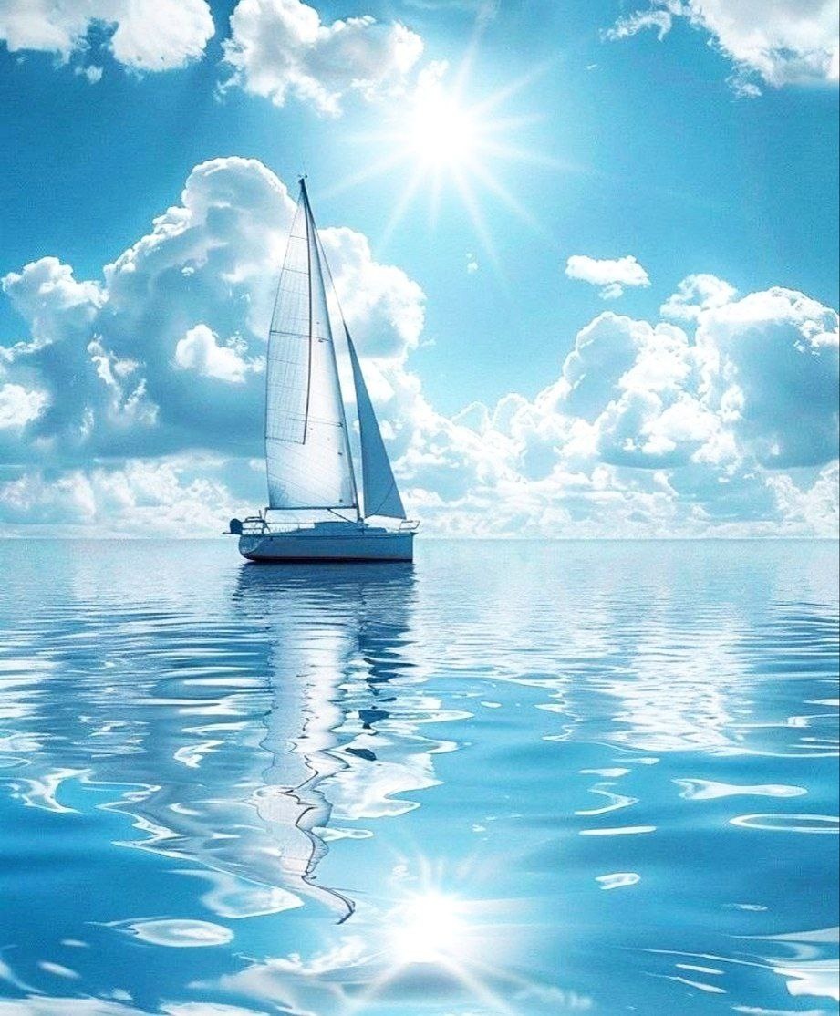 - Представь себе бескрайний океан, простирающийся далеко за горизонтом. Вода отражает небо, солнце играет бликами на её поверхности. Там, посреди океана, плывёт маленький кораблик. А человек на этом кораблике смотрит вдаль, осознавая величие окружающего мира, океана и неба.