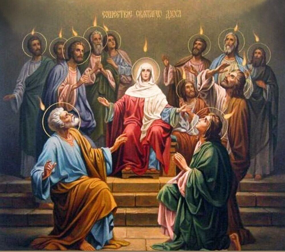 В пятидесятый день после Пасхи, мы празднуем один из главных двунадесятых праздников - День Святой Троицы. Воскресший Господь Иисус Христос обещал Своим ученикам послать Святого Духа, Который утешит их и дарует им от Бога способность проповедовать Евангелие разным народам на их родных языках. В десятый день после Вознесения и в пятидесятый - после Воскресения Иисуса Христа, все ученики Господа собрались для молитвы. Во время их молитвы, раздался сильный шум, и над головою каждого апостола появилось по огненному языку - это был Дух Святой, сошедший на них. Апостолов наполнила Божественная сила и благодать, которая научила их языкам всего мира, как и обещал Своим ученикам Воскресший Спаситель. В память об этом событии и был установлен праздник Святой Троицы. В этот день произошло явление всех трёх лиц Единого Бога: на апостолов сошёл Бог Святой Дух, Которого послал Бог Сын и Который исходил от Бога Отца. Праздник Святой Троицы- это ещё и день рождения Церкви Христовой. Бог Отец пол