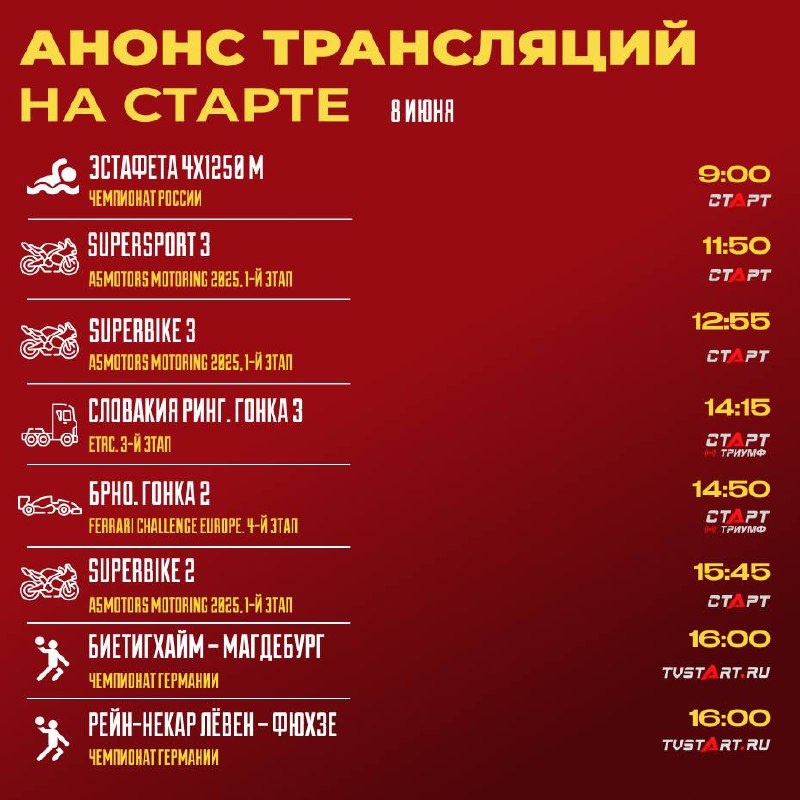 💁🏻♂️ А вот и расписание на день Вновь начнем с плавания, а затем – куча разного автоспорта. На вечер припасли для вас европейский баскетбол и решающие игры в SEHA-Gazprom League. С нами не заскучаешь 😌 🛒 Наше приложение в Google Play 💙 Наше приложение в RuStore 🛒 Наше приложение в App Store