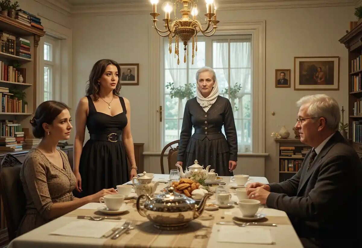 Тостов было уже четыре. Все — от интеллигентных людей: про науку, про ценность традиций, про то, как «женщина украшает мужчину, если умеет быть гибкой». За столом сидели коллеги Виктора Андреевича, старая соседка, которая когда-то преподавала в институте, и двое с хрустальной чёткостью: родственники с кафедры философии.