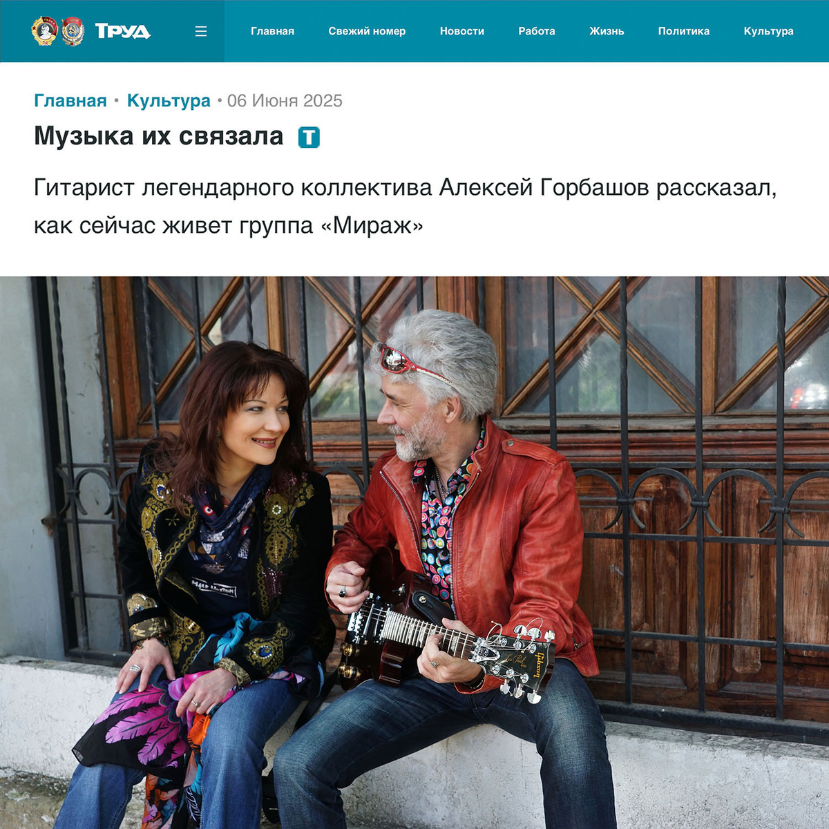 Группа «Мираж» не нуждается в особом представлении: кто не знает ее суперхиты «Музыка нас связала», «Наступает ночь»... С недавних пор песни коллектива обрели вторую жизнь, попав в сериал «Слово пацана». В общем, жизнь группы бьет ключом, о чем нам рассказал в эксклюзивном интервью лидер коллектива Алексей Горбашов.