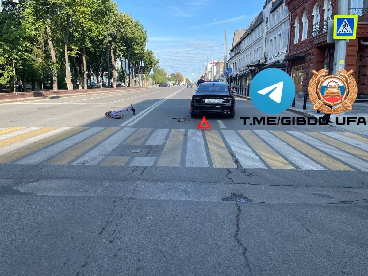 В центре Уфы на пустой дороге столкнулись иномарка и самокатчик