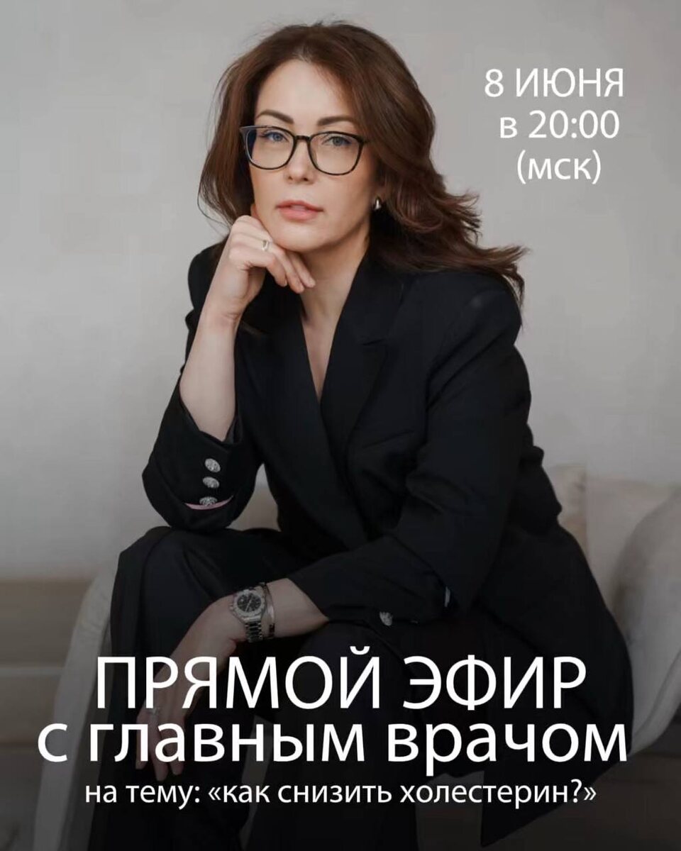 🌱НАПОМИНАЕМ 🌱 Сегодня в 20:00(мск) Встречаемся в прямом эфире с Хребтовой Юлией, главным врачом и основателем клиники Тема: «Как снизить холестерин?» Также в эфире Юлия расскажет одну интересную НОВОСТЬ 🤫 и ответит на ваши вопросы, пишите их в комментариях 👇🏻