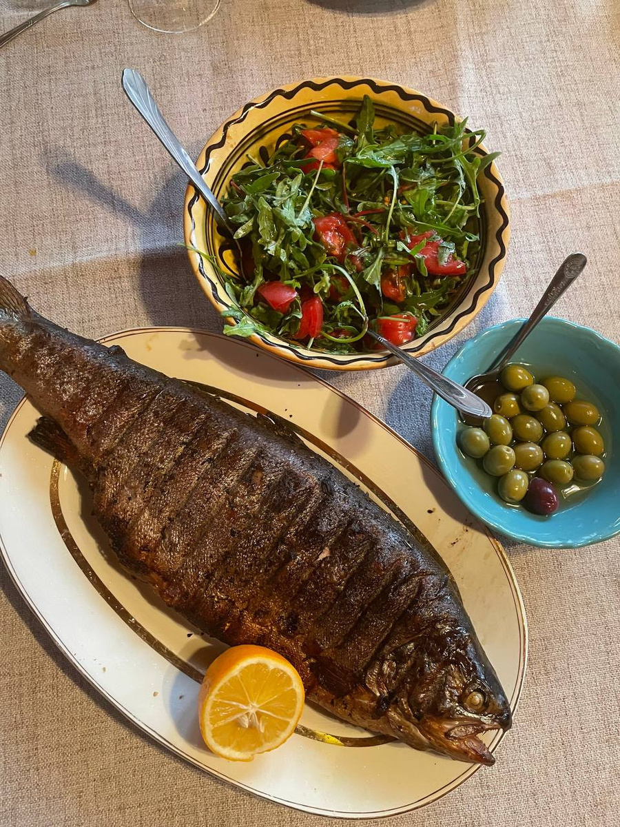 ❗ Форель на гриле Началось лето, погода тоже вполне летняя и тема дачных шашлыков и гриля все более актуальна. Мы с вами уже несколько раз обсуждали, что полезного, а главное, безопасного для ЖКТ, можно приготовить на дачном гриле. Вот и сегодня решила предложить вам еще один простой и очень вкусный вариант. Итак, делаем форель на гриле! Ингредиенты: 1️⃣ Собственно, форель — на мой взгляд из красной рыбы наилучший вариант для гриля, не такая жирная, как, искусственно выращенная, семга (а она практически вся такая в магазинах) и гораздо сочнее, чем горбуша или кижуч. Я беру обычно целиковую, потрошенную, весом 1-1,5 кг. Если брать более крупные рыбины, то их тяжелее нормально пропечь (чтобы не получилось снаружи подгорела, внутри сырая), поэтому если у вас большая компания, возьмите просто две или три рыбки до полутора килограмм. 2️⃣ Маринад — 40 мл оливкового масла, 40 мл лимонного сока, приправа «Итальянские травы», смесь перцев. Смешиваем масло и сок, добавляем приправы столько,