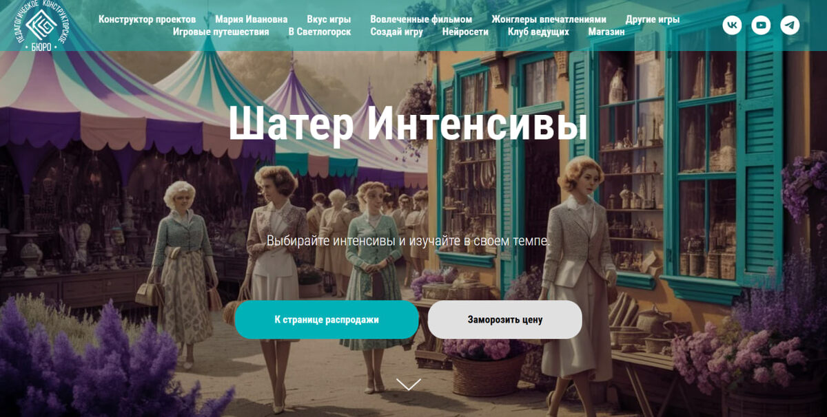 Что внутри? Зайти в шатер Возможность приобрести интенсивы по специальным ценам от 1700 до 3500 руб. - вместо 5500 - 7500 руб. можно оплачивать бюронами. Какие интенсивы участвуют в ЯРМАРКЕ-РАСПРОДАЖЕ? 1️⃣ "Нейросети шаг за шагом" для тех, кто осваивает нейросети. Подробнее 2️⃣ "Нейросети для публичных выступлений. Игровые приемы вовлечения" для тех, кто ищет фишки для выступлений. Подробнее 3️⃣ "Нейросети. Проекты. Экспертиза" для тех, кто работает с проектами. От идеи до реализации. Конкурсы и Гранты Подробнее 4️⃣ "Сторителлинг + Нейросети + Кино" для тех, кому нужен контент, кто пишет истории про себя, свой продукт, своих клиентов. Внутри 25+ формул кино. Подробнее 5️⃣ Мастерская продающих историй старт 24 июня для тех, кто хочет продавать через контент и выстраивать продающие цепочки. Подробно скоро будем рассказывать в канале. Подробнее 6️⃣ "Авторская игра за 2 дня" для тех, кто задумался о создании игры Подробнее 7️⃣ "Игры для Телеграм-кана