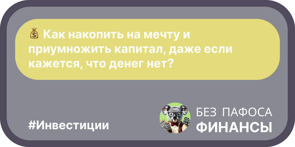 Не откладывайте на завтра то, что может сделать вас финансово свободным сегодня! Начните прямо сейчас: отложите хотя бы 100 рублей на свою мечту или откройте небольшой инвестиционный счет. А на что вы копите или во что уже инвестируете? Делитесь в комментах, поддержим друг друга!