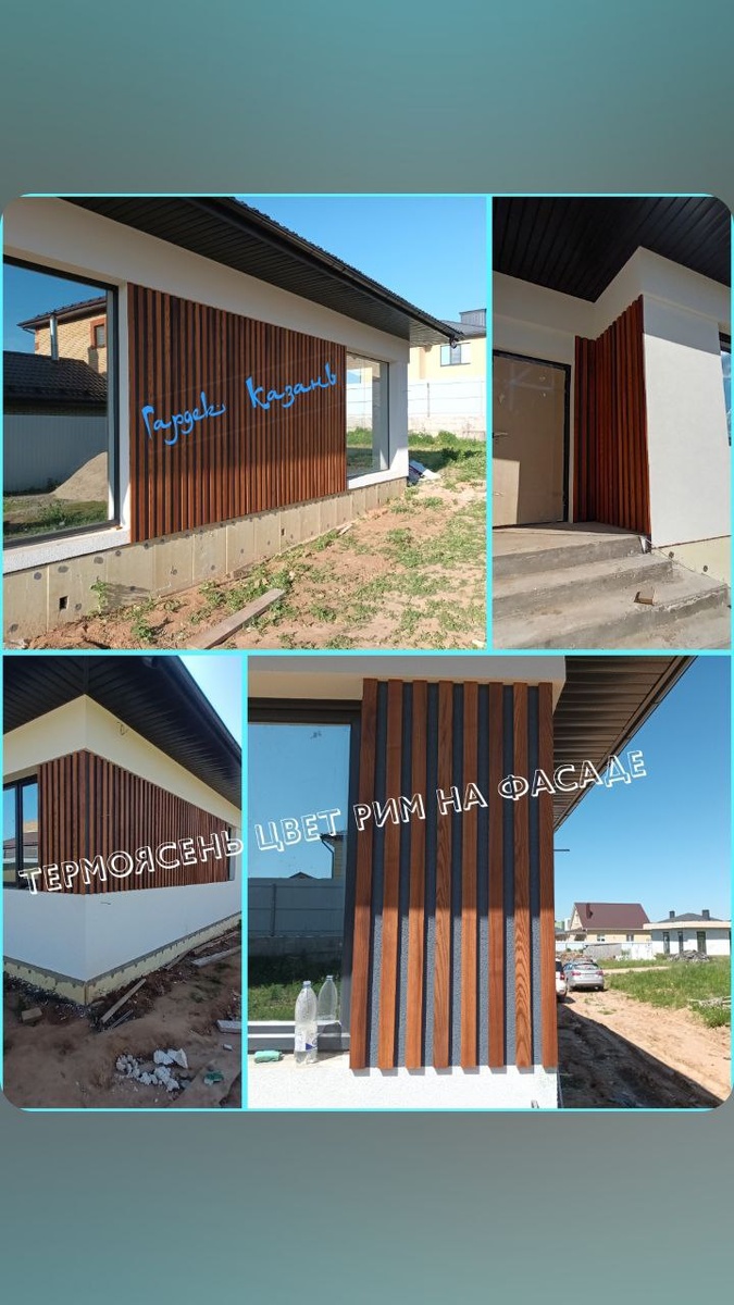 Завершили работы по монтажу бруса из термоясеня покрашенного в цвет Рим. Объект выполнен "под ключ" т.е. 1) Производство термоясеня в размер клиента 20х60 мм. 2) Шлифовка термобруса 3) Покраска маслом в цвет Рим и обработка финишным масло-лаком 4) Монтаж термобруса на клей на фасад (подбирали из 5 видов клея и в конечном итоге нашли самый оптимальный по всем параметрам). Если желаете так-же пишите, звоните и заказывайте.
