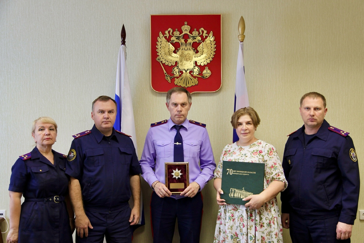 Награду руководителю следственного управления Евгению Шаповалову вручила представитель волонтерской организации Татьяна Тарасова.