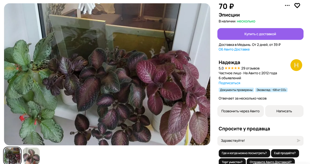 Но цена не большая, а заказывать три бюджетных растения не всегда выгодно с точки зрения доставки. И вот я оставила ее в избранном, но поглядывала и другие объявления, вдруг мне надо чего-то большой пачкой)))