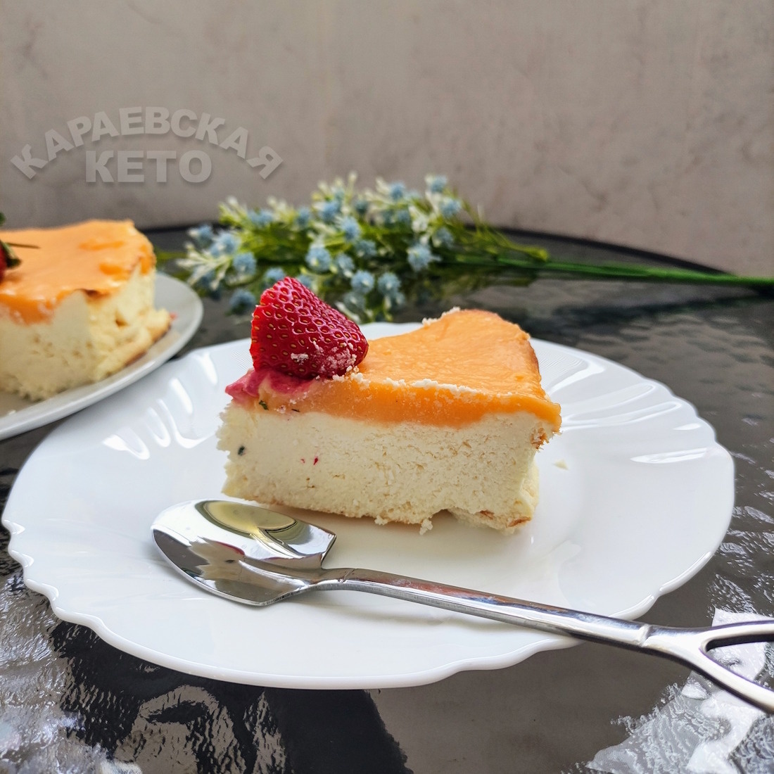 оставить остывать накрыв в контакт пищевой пленкой. Готовую запеканку остудить до комнатной температуры, нанести сверху ровным слоем крем, можно украсить ягодой и убрать на холод для застывания крема.