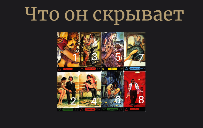 Расклад поможет понять, что он скрывает, истинное положение дел, его намерения, чувства и эмоции к вам на самом деле, совет, как с ним лучше взаимодействовать.