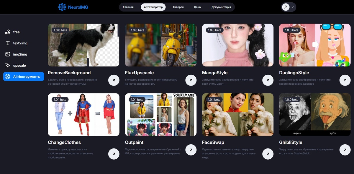 🎨 Новая глава NeuroIMG — теперь у нас есть целый раздел AI инструментов