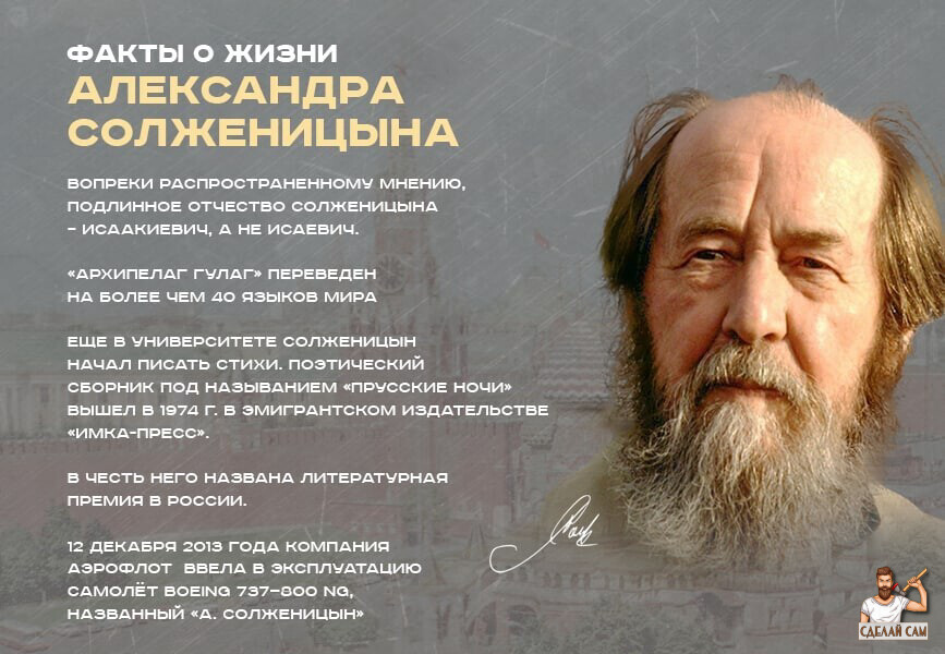 Александр Исаевич Солженицын (1918–2008) — выдающийся русский писатель, публицист, историк и общественный деятель, лауреат Нобелевской премии по литературе 1970 года. Его произведения, такие как «Архипелаг ГУЛАГ», «Один день Ивана Денисовича» и «Раковый корпус», стали символом сопротивления тоталитаризму и раскрыли правду о сталинских репрессиях. Жизнь Солженицына была полна испытаний, борьбы за правду и духовных поисков. В этой статье собраны самые интересные и малоизвестные факты о его жизни, которые раскрывают его как писателя, диссидента и человека с непреклонной волей.