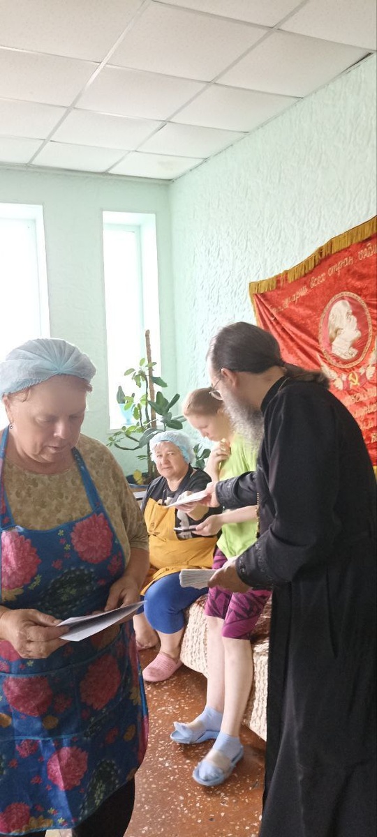 Подобная акция прошла и в Пансионате "Советский", где были поздравлены с праздником Святой Троицы пожилые люди, которым так же были розданы напечатанные крупным шрифтом посвящённые празднику буклеты.