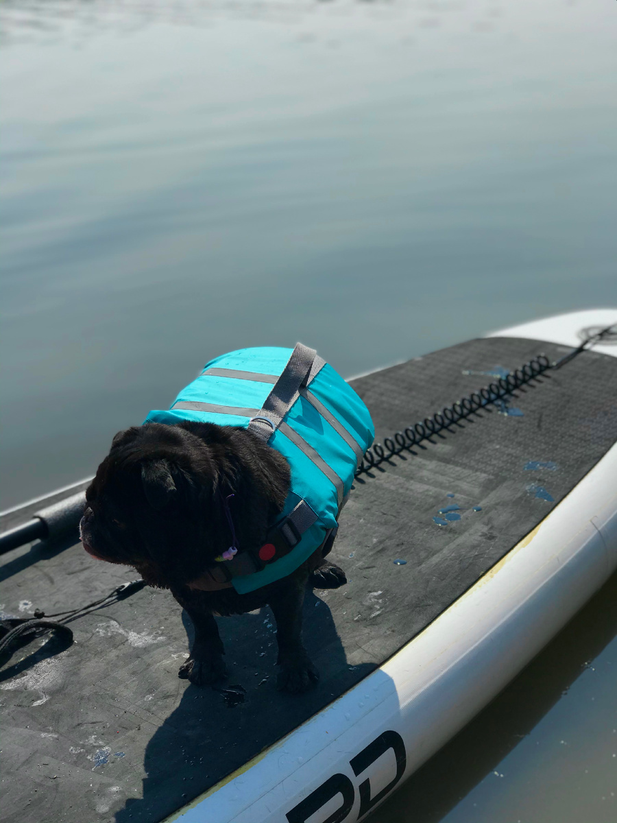 В эти выходные мы наконец открыли сезон поездок на природу(обычно я хожу в горы с весны, как только потеплеет, но в этом году получилось совсем уж поздно из-за погоды), а Тайсон заодно выгулял непригодившийся в прошлом году спасательный жилет и открыл купальный сезон😁 Я давно хотела покататься с ним на сапах - на такие прогулки проще всего поехать: они часто проходят прямо в городе, не нужно никуда уезжать на весь день, длятся недолго и его можно брать с собой, даже если это тур, никуда не надо идти с его больной лапой, в отличие от гор. В общем, одни плюсы. Тайсон обычно пугается всего нового, даже какую-то малейшую перестановку или новую вещь замечает и тревожится, а то, что связано с плаванием не очень любит - плавать он не умеет(без жилета тонет), поэтому и от водоемов тоже не в восторге. Хотя дома прекрасно спокойно моется. А вот любой воды на улице избегает, даже луж в лифте. Поэтому я ожидала, что кататься на сапе его придется уговаривать - помимо того, что это связано с водой