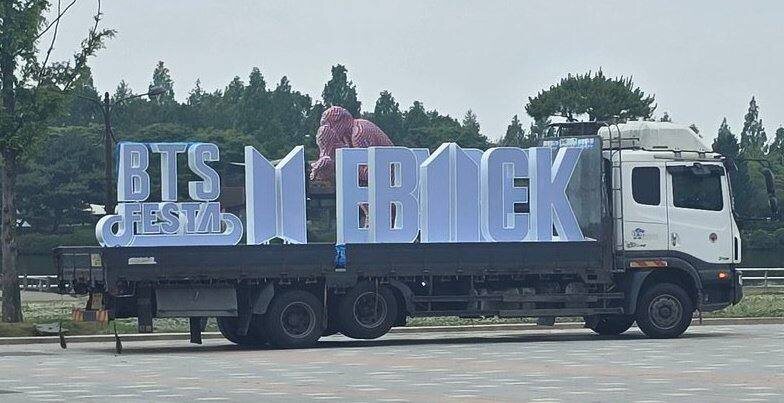 🍊 В парке рядом с Kintex hall устанавливают логотип BTS Festa.