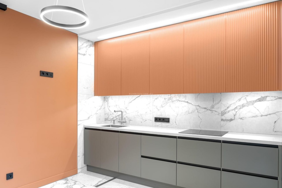 🔹 Фасады: МДФ эмаль RAL 7039 (дымчатый графит, матовый) / T641 (теплый терракотовый оттенок)
