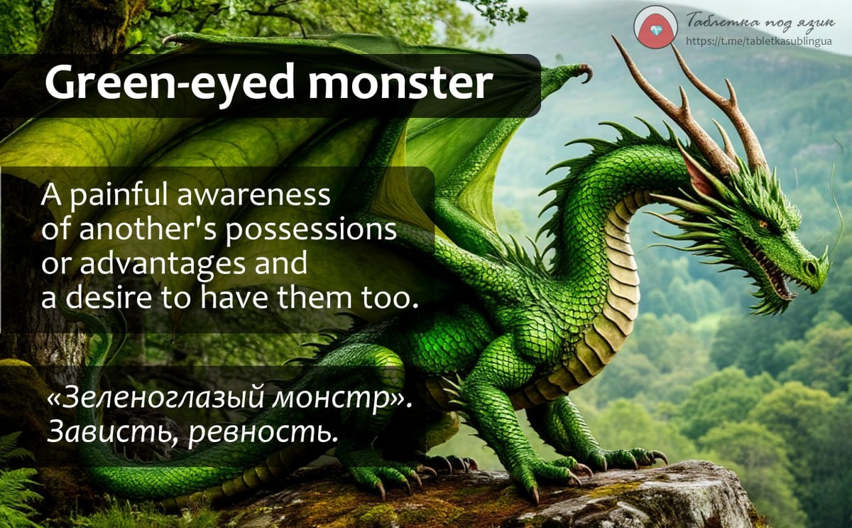 Зеленоглазый монстр – кто это? Фраза green-eyed monster означает ревность или зависть. Её происхождение связывают с двумя ключевыми источниками: Уильям Шекспир 📜 “Merchant of Venice” (1596): “And shuddering fear, and green-eyed jealousy!” («Сомнение, отчаянье, испуг и муки ревности зеленоглазой!»). 📜 “Othello” (1604), where Iago warns Othello, “O, beware, my lord, of jealousy; It is the green-eyed monster which doth mock the meat it feeds on.” (Яго предупреждает Отелло: «О, берегись ревности, мой господин! То - чудовище с зелёными глазами, что насмехается над мясом, им же съеденным.» Правда, в переводе Пастернака чудище превратилось в ведьму)) Здесь Шекспир буквально олицетворяет ревность как жуткое существо, которое мучает человека изнутри. Ещё до Шекспира зелёный цвет связывали с нестабильностью, болезнью и завистью: 🤢 В древних культурах считалось, что у ревнивцев «зеленеет» лицо (как при тошноте). 🤢 В средневековой Европе зелёный ассоциировался с дьяволом и пороком. Почему