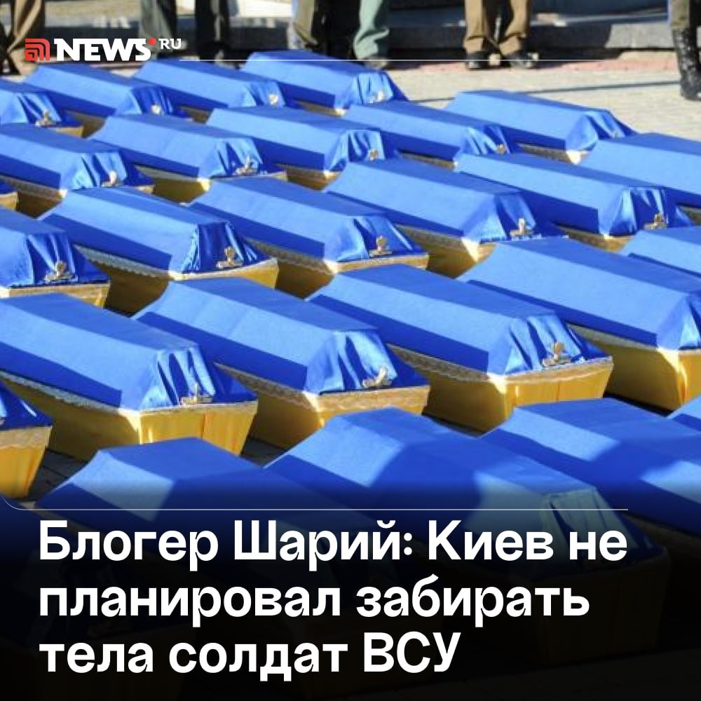 В ответ на пост «Киев не готов технически»: украинский журналист раскрыл причину отказа забирать тела солдат ВСУ. Проблема не в том, что украинские власти не хотят выплачивать деньги семьям погибших — в стране попросту нет базы для того, чтобы принимать тела солдат, рассказал Анатолий Шарий. «Киев, по сути, кричит россиянам: "Заройте их под забором, нам они не нужны, нам плевать". А народ будет молчать, как послушное стадо, наблюдая за этим космическим скотством», — добавил он. ⭕️ Подписаться | Прислать новость | Буст