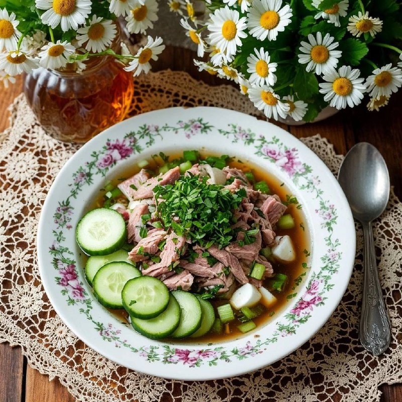 Нарежьте всё с любовью, смешайте с фантазией, добавьте кваса или кефира (тут каждый мастер своего вкуса). И пусть каждый глоток вернет вас в самое тёплое состояние – полное покоя, солнца и легкого ветерка.