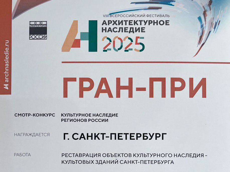 В Рязани на VIII Всероссийском фестивале «Архитектурное наследие» подведены итоги конкурса «Культурное наследие регионов России», сообщает пресс-служба Смольного. Петербург стал лучшим, получив Гран-при и «золотой» диплом в номинации «Реализованные программы, направленные на сохранение объектов архитектурного и ландшафтного наследия».