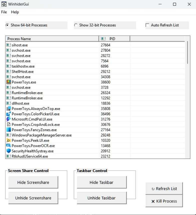 WinHider для Windows: Скрытие окон из трансляций и панели задач без завершения процессов