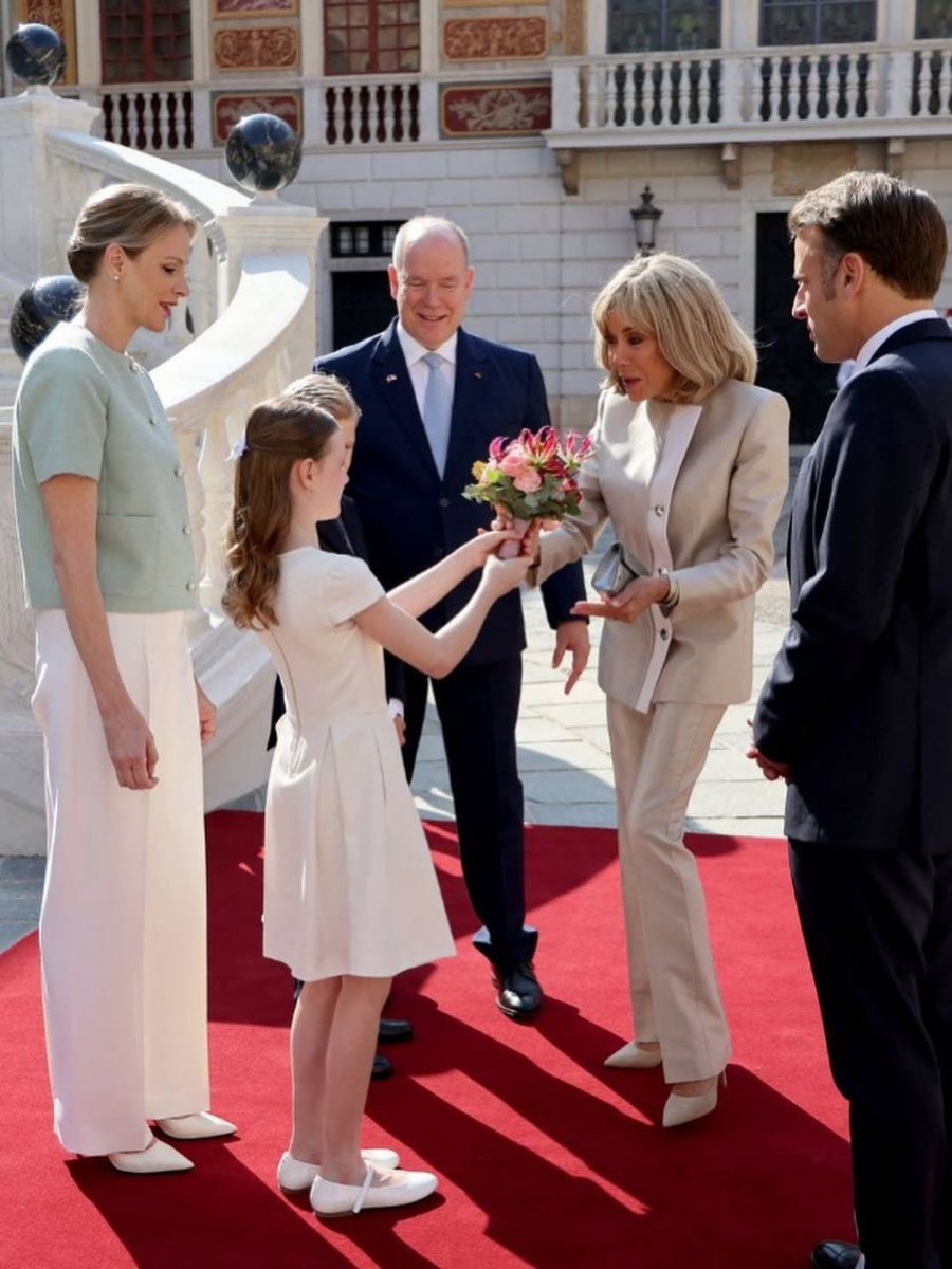 🇲🇨 Еще фотки со встречи и с вечернего приема в Монако. Шарлен не носит тиары, вообще, по жизни. Хотя у нее есть своя тиара "Океан", она надевала ее только фотосессию