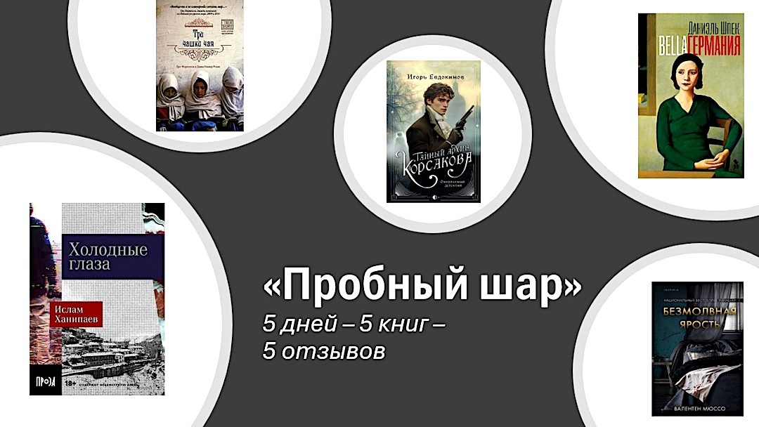 Вот и закончилась первая серия «Пробного шара». О новой рубрике я рассказывала вам в конце мая. На тот момент я ещё слабо представляла, как всё это организовать «технически», чтобы получилось живо, ярко, интересно. Сейчас наверное уже можно сказать, что всё сложилось. За 5 дней я познакомилась с 5 книгами и рассказала о них читателям. Дневник чтения вела в Телеграм-канале. Осталось подвести итоги и опубликовать развёрнутые отзывы.